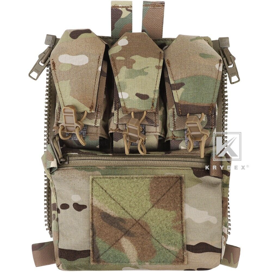 - El panel trasero Zip On incluye tres bolsillos expandibles de ajuste múltiple con solapas de retención ajustables y un bolsillo de uso general para guardar objetos pequeños. La cremallera es de tamaño YKK #10 y tiene una longitud de 9.5 pulgadas.