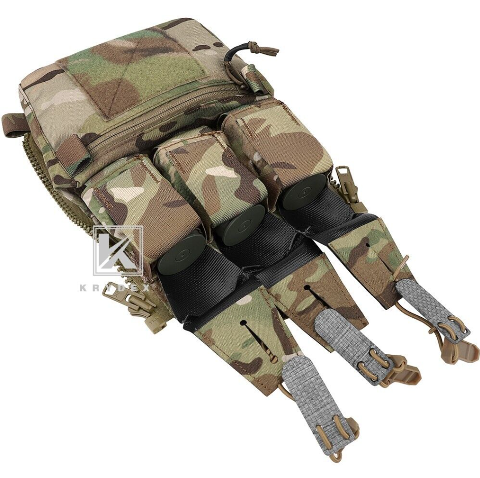 - El bolsillo frontal KTAR para tres cargadores con ganchos G es desmontable, se ajusta a cargadores de 5.56 y es compatible con chalecos Slickster y FCPC.